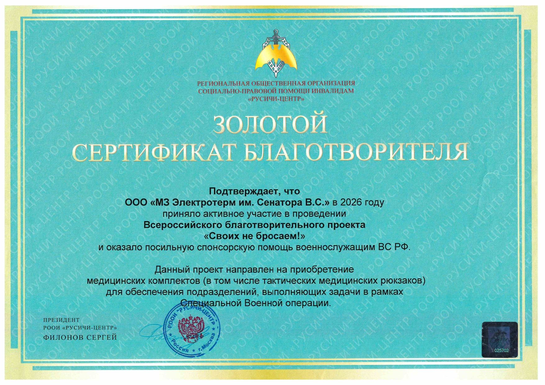 Мы выражаем свою благодарность за посильную помощь